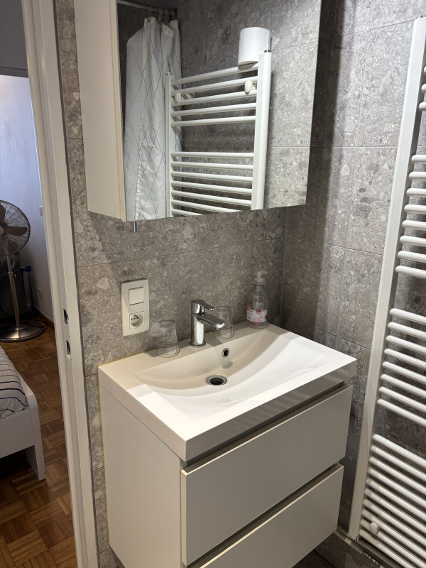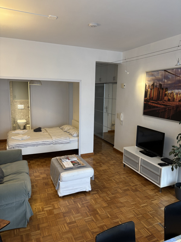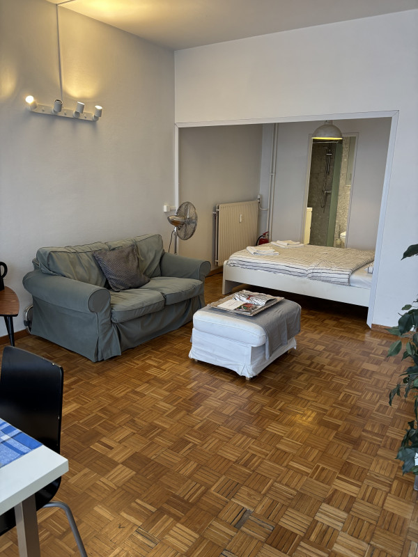 Gemeubelde studio van 41 m2 op parketvloer, de badkamer en keuken zijn recent geplaatst. Een ingemaakte kast tot plafondhoogte is tevens voorzien. Alles is voorzien in de studio om onmiddellijk in gebruik te nemen. Alles inclusief servies, potten en pannen, alles kan blijven staan. De meubels zijn nog perfect bruikbaar en momenteel nog in gebruik, maar uiteraard met wat gebruikssporen.