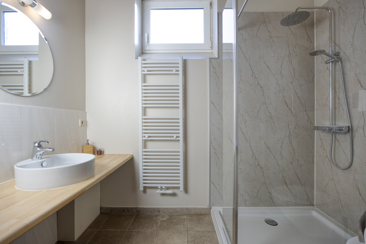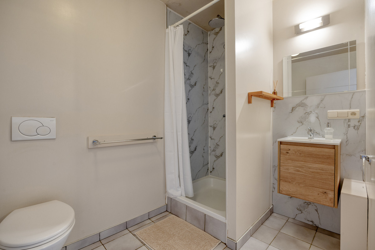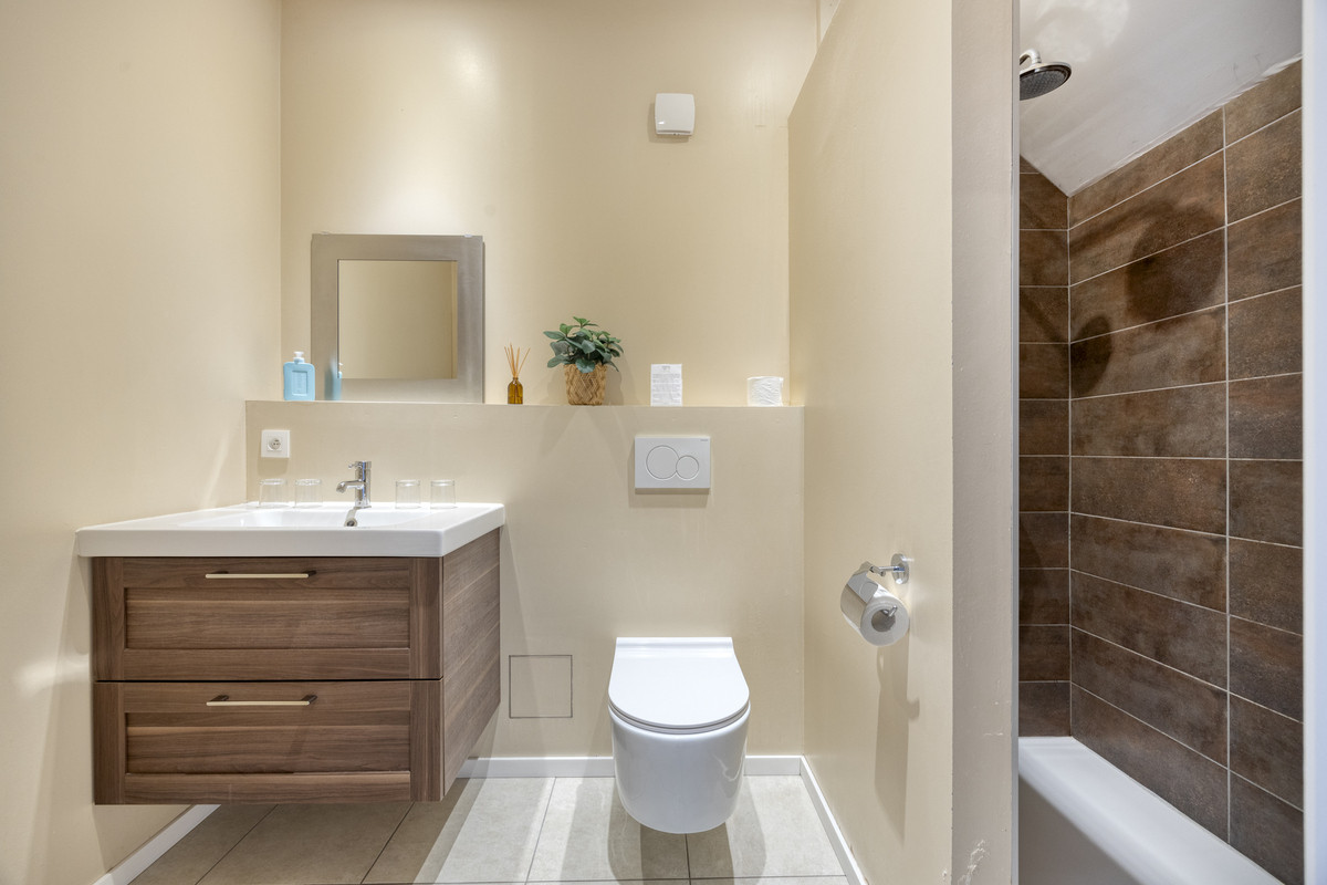 - Appartement met twee 2-persoonskamers, badkamer met lavabo, douche en wc