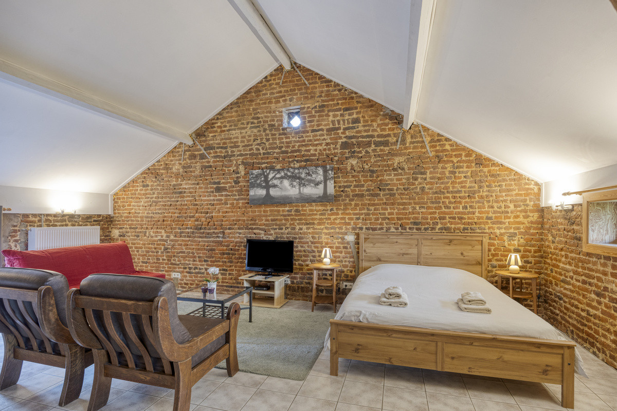 In het landelijke Gingelom, op de hoek van een rustige straat en omgeven door weelderig groen, ligt deze B&B — een authentieke vierkantshoeve die voelt als een postkaart uit Haspengouw. De omgeving ademt rust, ruimte en verbondenheid met de natuur: uitgestrekte velden, zachte glooiingen, fruitbomen en wandelpaden vormen een idyllisch decor voor gasten die even willen ontsnappen aan de drukte van alledag.