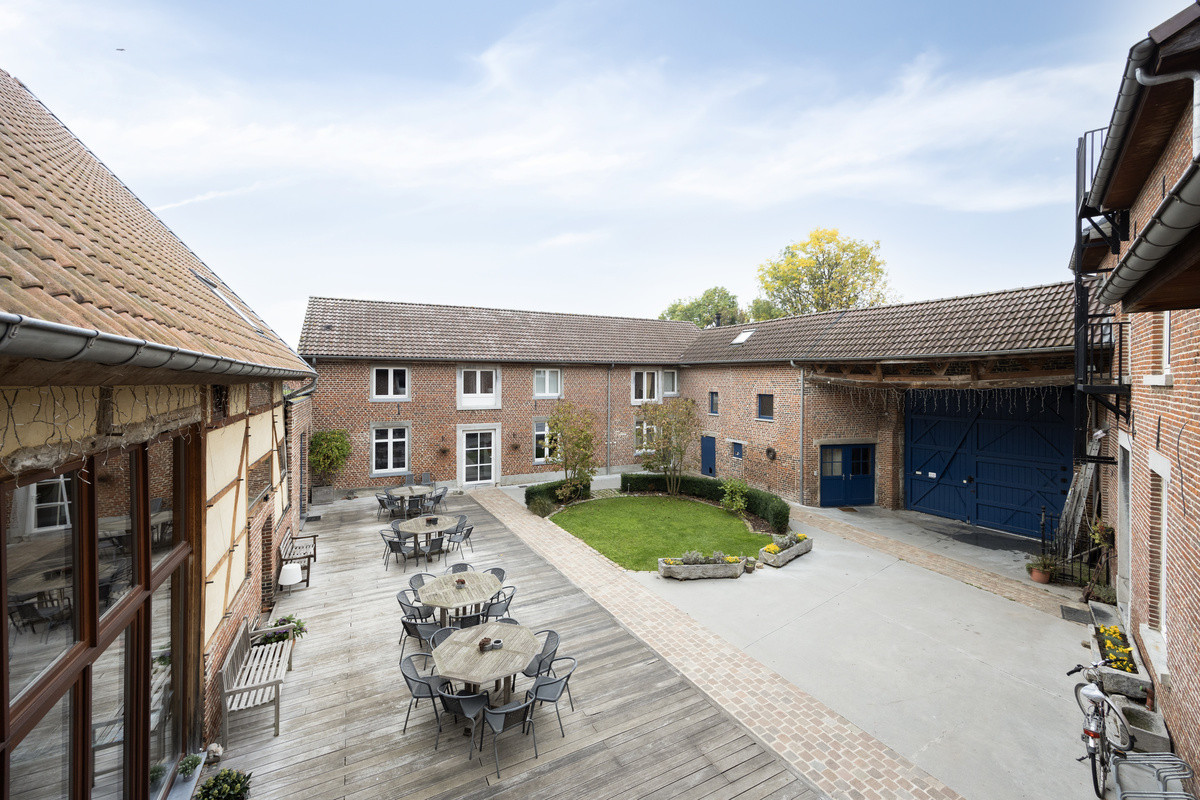- Grote binnenkoer met terras en sfeervolle tafeltjes