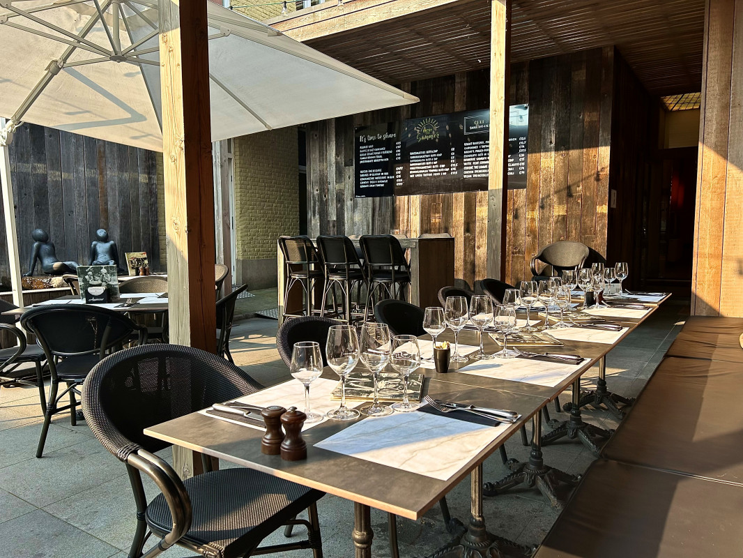 Een authentieke brasserie gelegen in hartje Roeselare. De zaak staat volledig instapklaar. De brasserie is sfeervol en stijlvol ingericht en biedt binnen plaats aan een 60-tal personen. Er is een terras vooraan voor wie wil genieten van de stad, maar het pareltje van Roeselare is ons achterterras waar je kan genieten van de sfeer en de rust. Op de eerste verdieping bevindt zich een ingerichte polyvalente ruimte en volledig apart een ingericht bureau. Een volledig ingerichte keuken, aparte afwasruimte en meerdere opbergruimtes zorgen ervoor dat je efficiënt kan werken. Grote troef is dat alle leveringen via de achterzijde kunnen gebeuren zodat men nooit door het publieke deel moet leveren. Aan de achterzijde van het gebouw zijn trouwens 6 private parkeerplaatsen en 2 garages. Of je nu wilt voortzetten wat er al is of een geheel nieuw concept wil introduceren, dit pand biedt u alle mogelijkheden om uw horecadroom waar te maken. Naar ligging, accommodatie en bekendheid van de zaak is de huurprijs (3.358€) een extra troef.