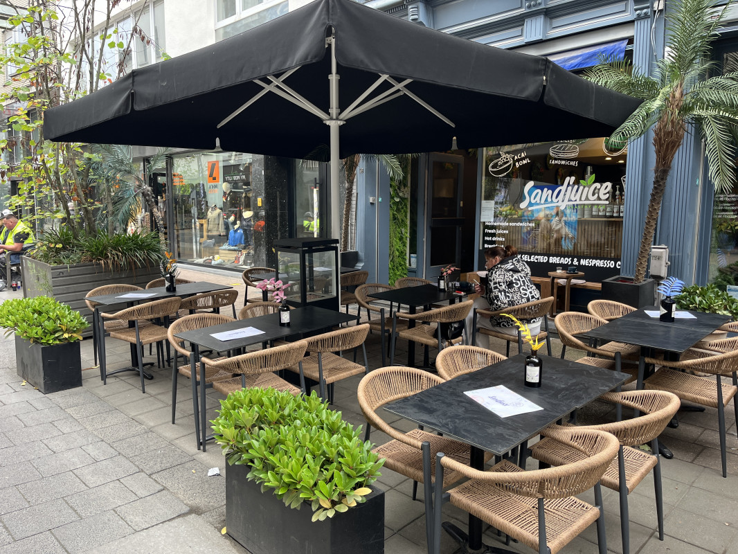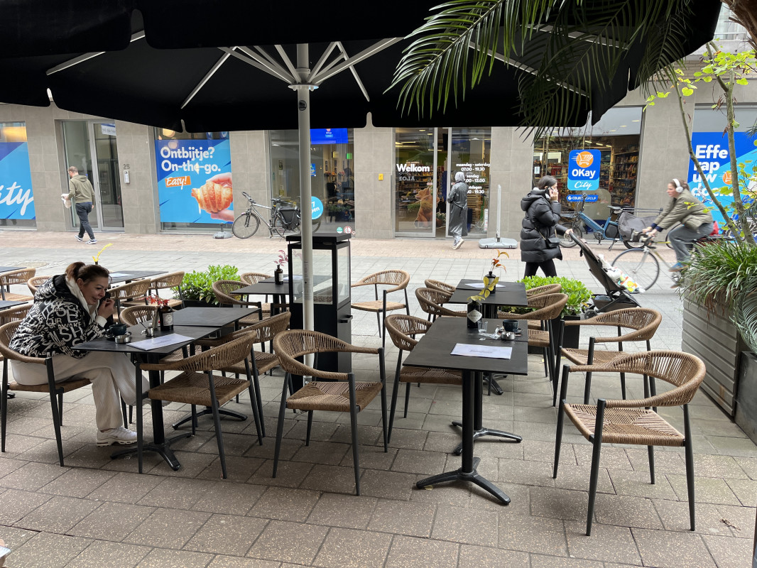 Binnen 16 zitplaatsen + mezzanine met 14 zitplaatsen