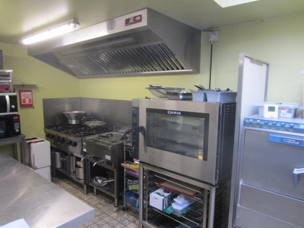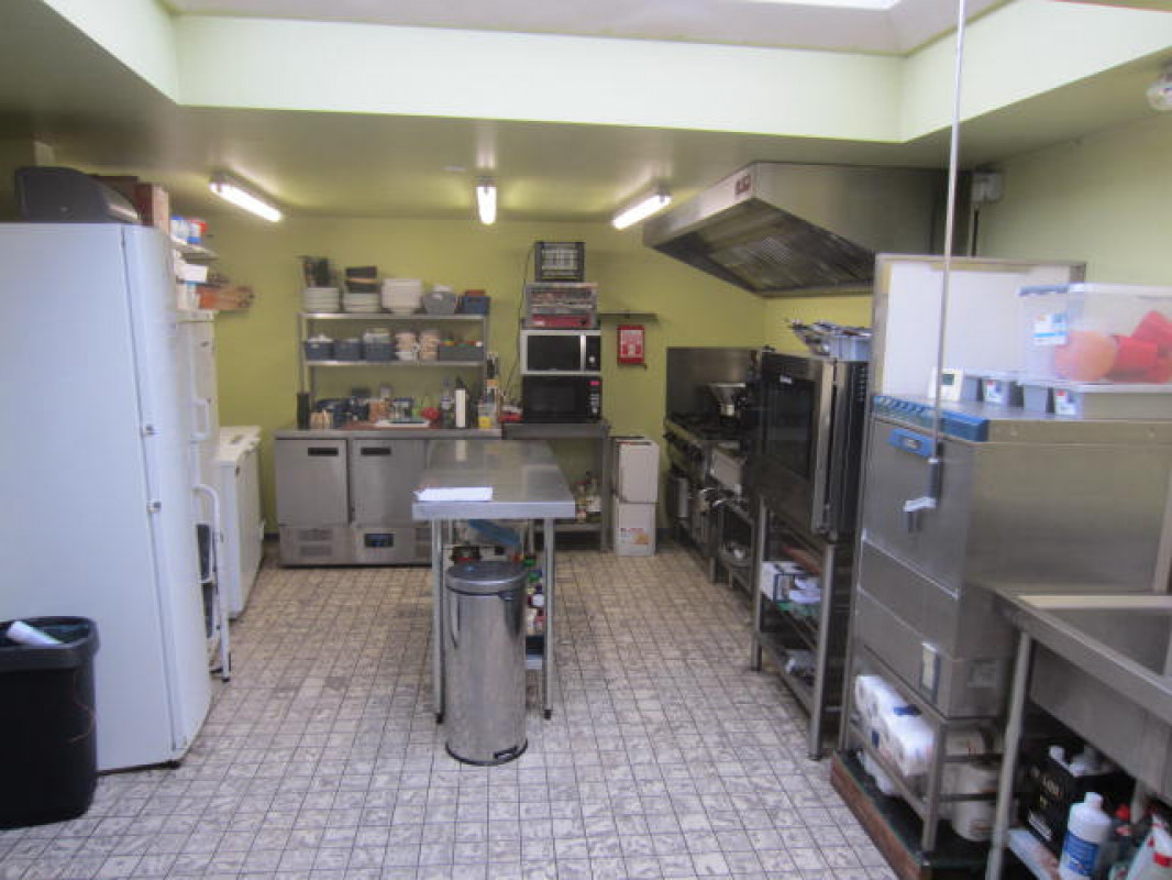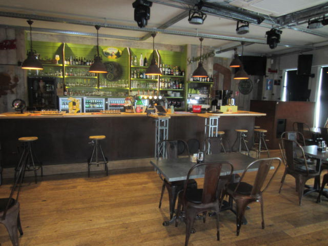 Verder een geinstalleerde keuken met diepvries , koelkast , combisteamer en al de nodige toestellen en een kleine vergaderzaal . Aparte toiletten voor dames en heren en twee garages waarvan er één voor opslag dranken en de andere als berging gebruikt worden .