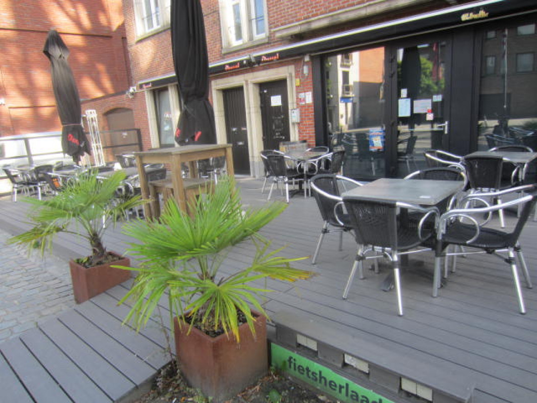Zij bestaat uit een verbruikzaal van ongeveer 85 m2 groot met een 40 tot 50 tal zitplaatsen , een ruim terras over de gehele lengte met de ganse dag zon goed voor een 40 tal zitplaatsen .