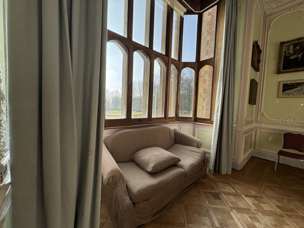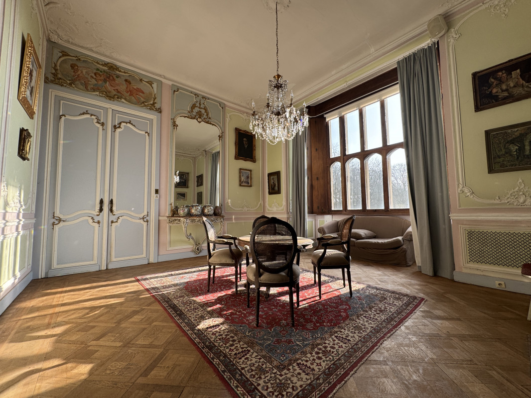 Het kasteel heeft op het gelijkvloers een royale inkom met trappenhal, 2 zalen en een veranda/orangerie.