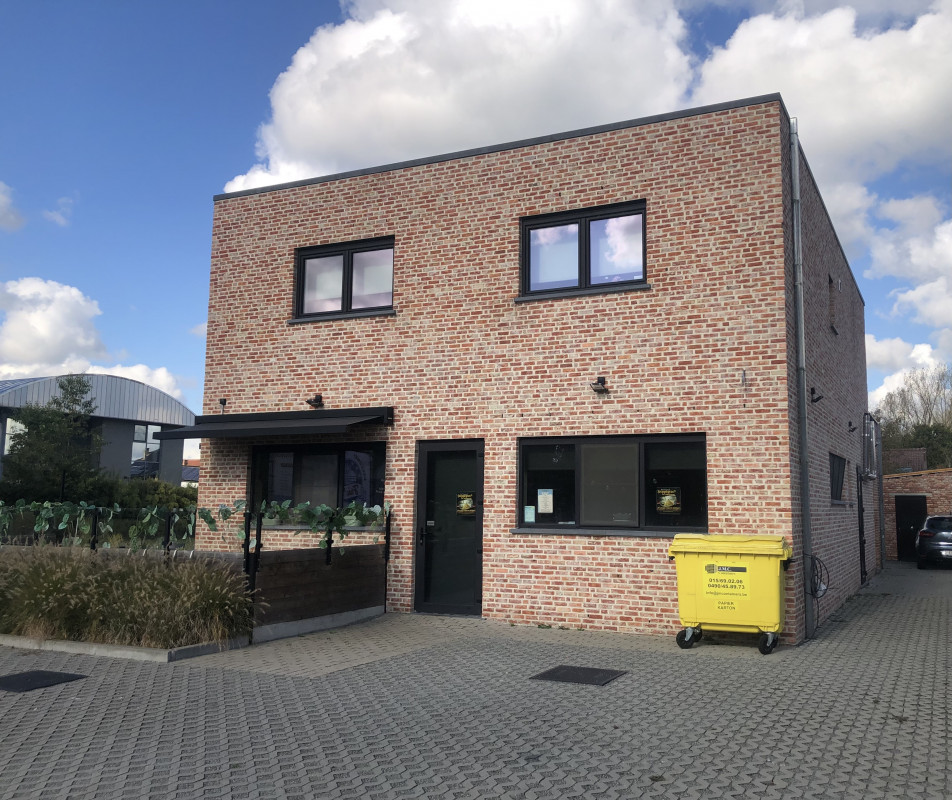 Nieuw pand (op grond +/- 8 are) met mooie zaak ( combi frituur/snackbar) en bovenliggend modern appartement (2-3 slpkmrs.)