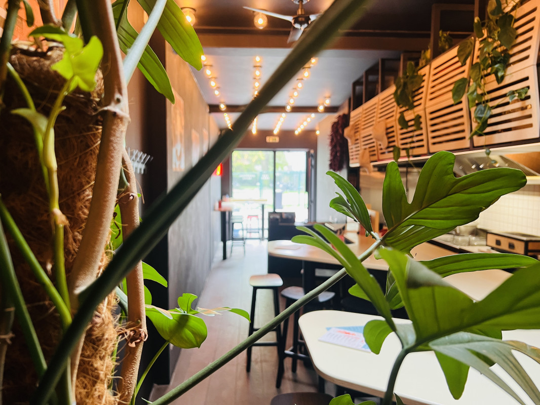 Het interieur is fris, hip en onderscheidt zich duidelijk van de meer traditionele take-away zaken in de buurt, wat meteen een sterke meerwaarde vormt.
