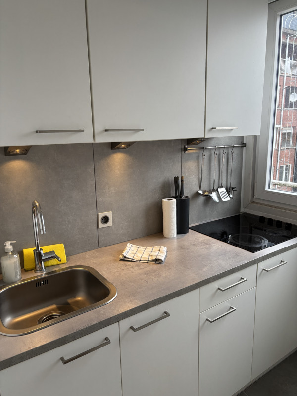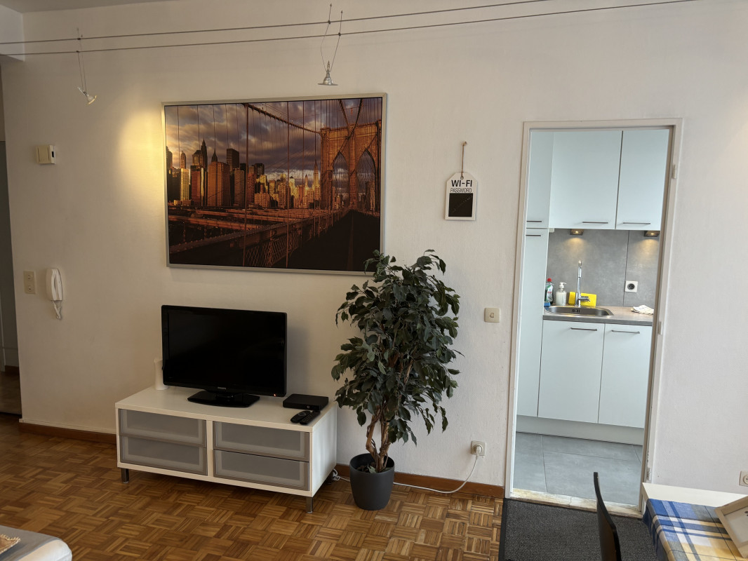 Gemeubelde studio van 41 m2 op parketvloer, de badkamer en keuken zijn recent geplaatst. Een ingemaakte kast tot plafondhoogte is tevens voorzien. Alles is voorzien in de studio om onmiddellijk in gebruik te nemen. Alles inclusief servies, potten en pannen, alles kan blijven staan. De meubels zijn nog perfect bruikbaar en momenteel nog in gebruik, maar uiteraard met wat gebruikssporen.