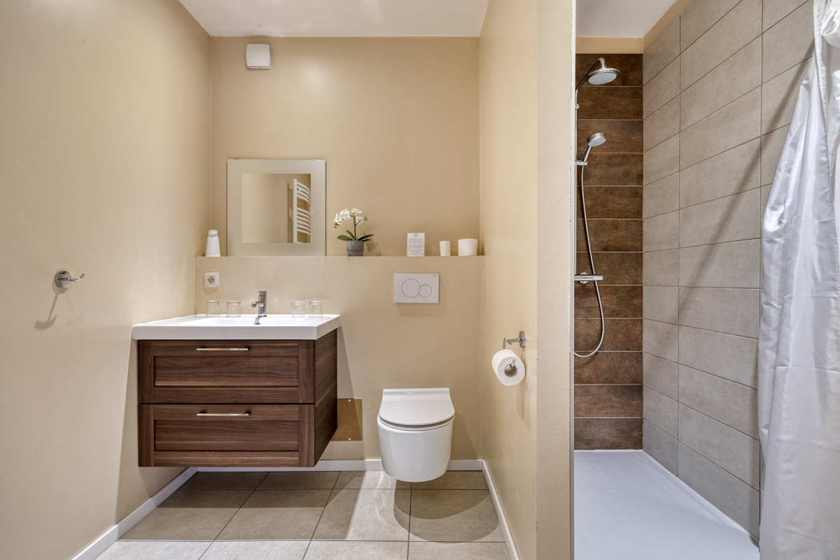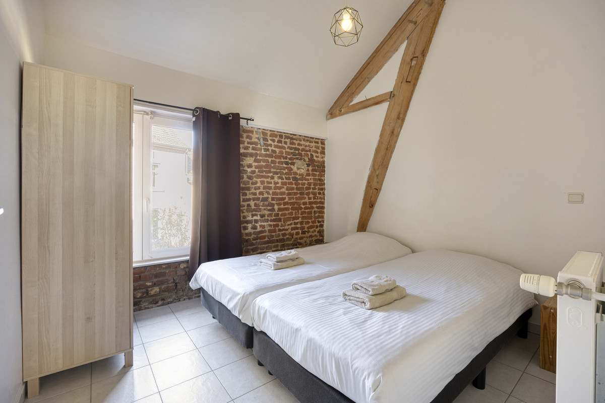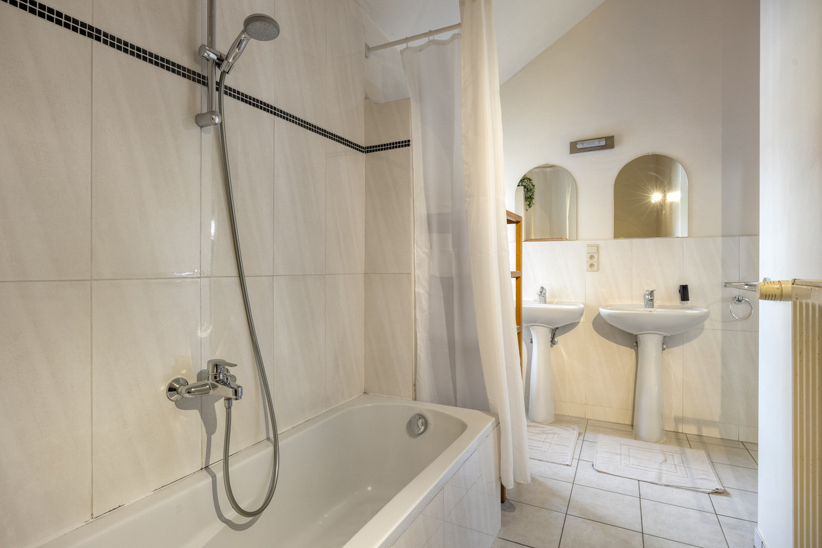 - Appartement met twee 2-persoonskamers, badkamer met lavabo, douche en wc