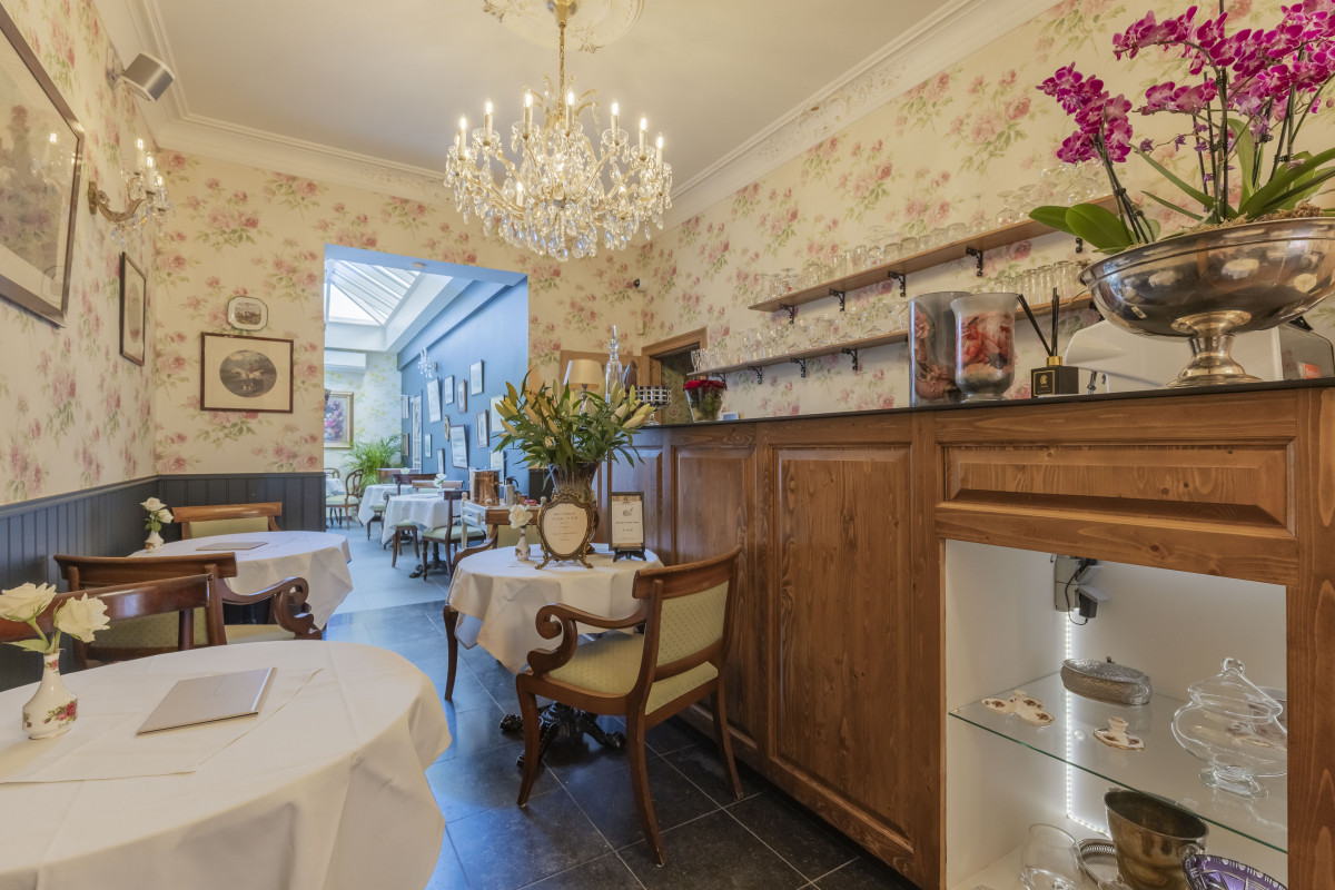 Binnen verwelkomt het stijlvolle interieur je met een gezellige mix van elegantie en huiselijkheid de perfecte plek voor een heerlijke brunch, afternoon tea of een ontspannen diner met vrienden.