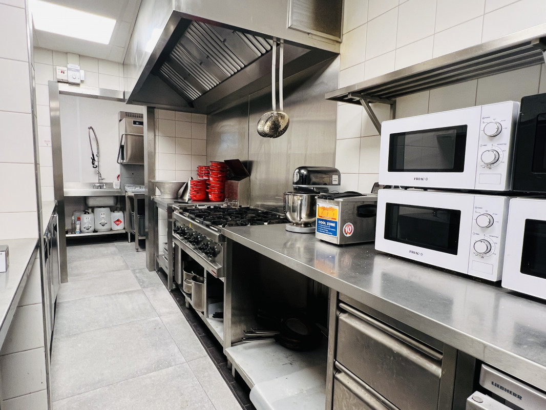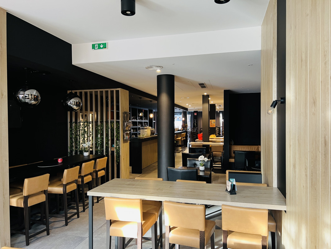 Binnen zijn er circa 80 zitplaatsen. De toog en professionele keuken zijn volledig uitgerust met alle nodige toestellen, voorzien van voldoende koelruimte en functionele werkzones. In de kelder bevinden zich bijkomende opslagruimtes, waaronder twee koelcellen en extra koeling voor efficiënt voorraadbeheer.
