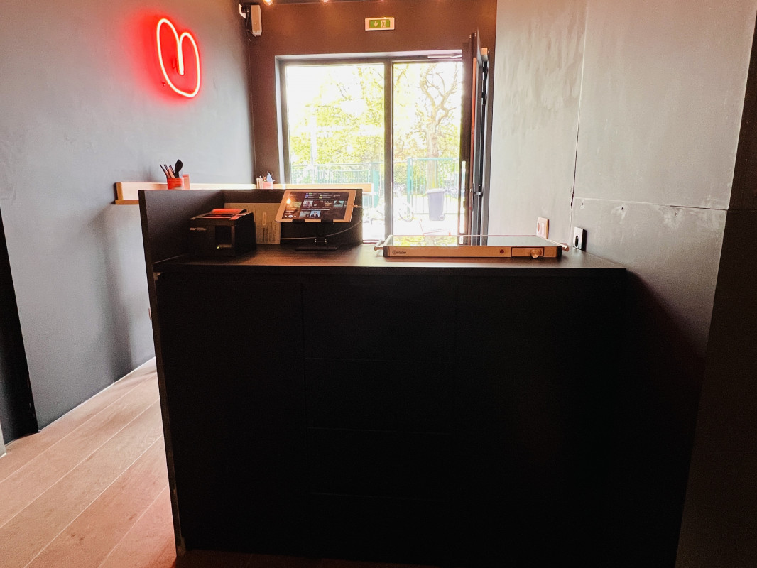 Alle toestellen zijn aanwezig en de indeling is perfect afgestemd op zowel zaalservice als take-away en delivery, met zelfs een aparte toog die hier specifiek voor voorzien is.