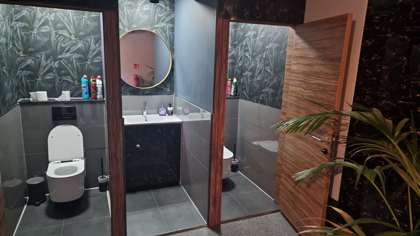 1ste V: sanitaire ruimte met 2 toiletten en polyvalente ruimte/bureau.