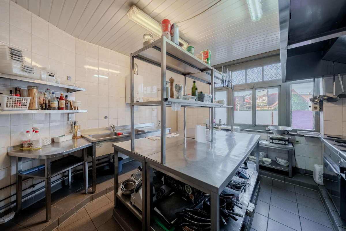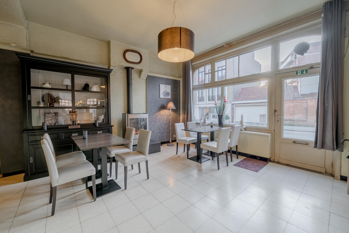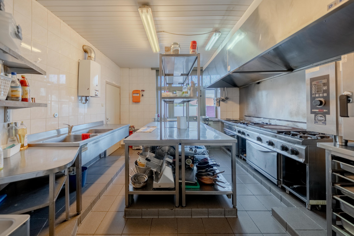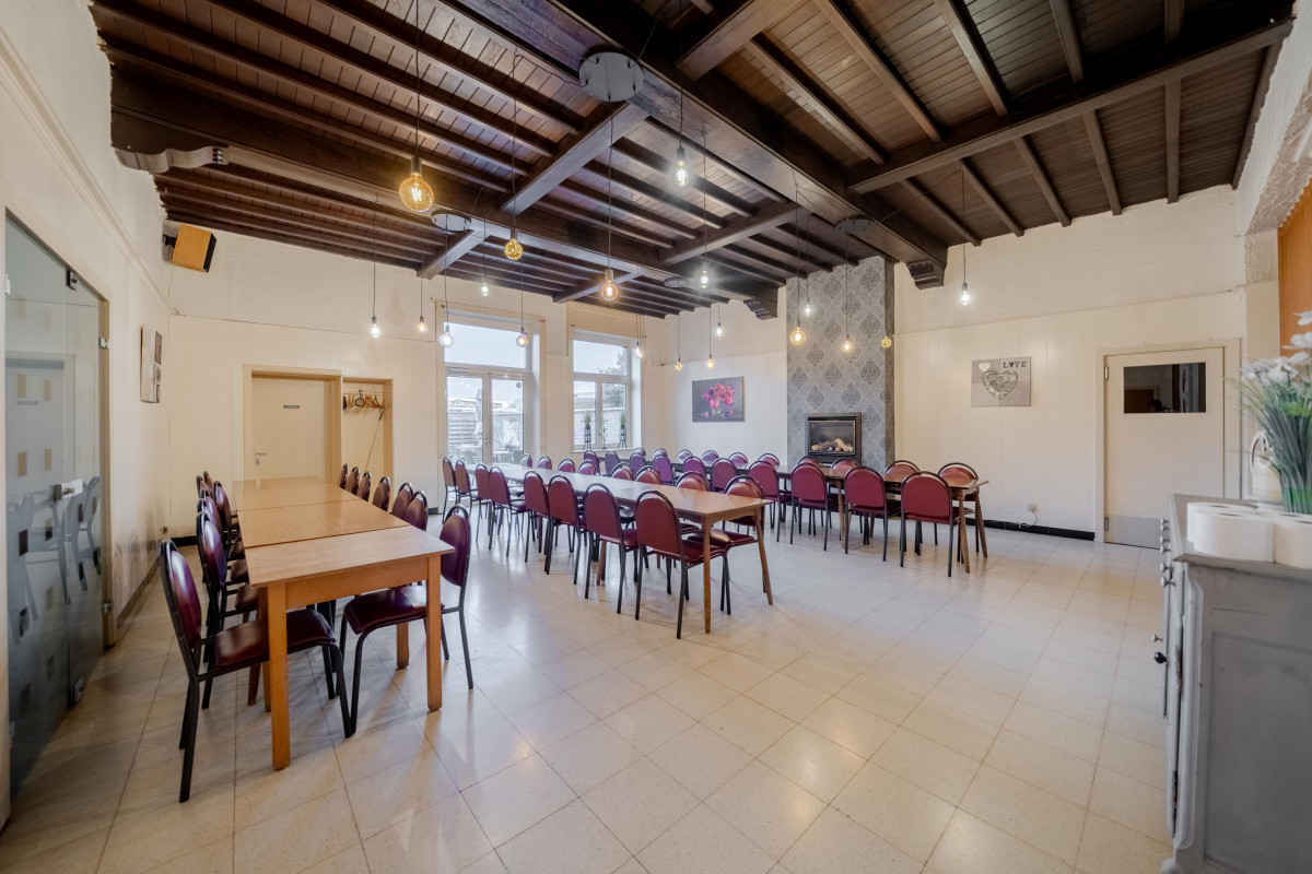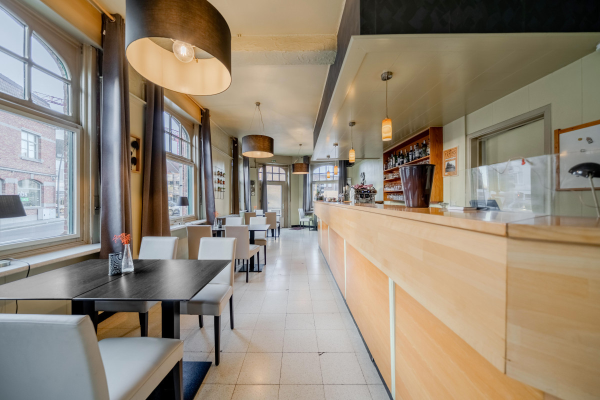 De zaak leent zich perfect tot uitbating als restaurant of café en beschikt over een zeer ruime horecaruimte met aansluitend een grote feestzaal. Deze feestzaal biedt tal van mogelijkheden voor privéfeesten, evenementen of zakelijke bijeenkomsten en vormt een belangrijke meerwaarde binnen het geheel. Het zonnige terras is een extra troef en zorgt voor een aangename sfeer die zowel vaste klanten als nieuwe bezoekers aantrekt. De royale oppervlaktes en praktische indeling laten toe om het concept verder uit te bouwen of aan te passen aan uw eigen horeca­visie.