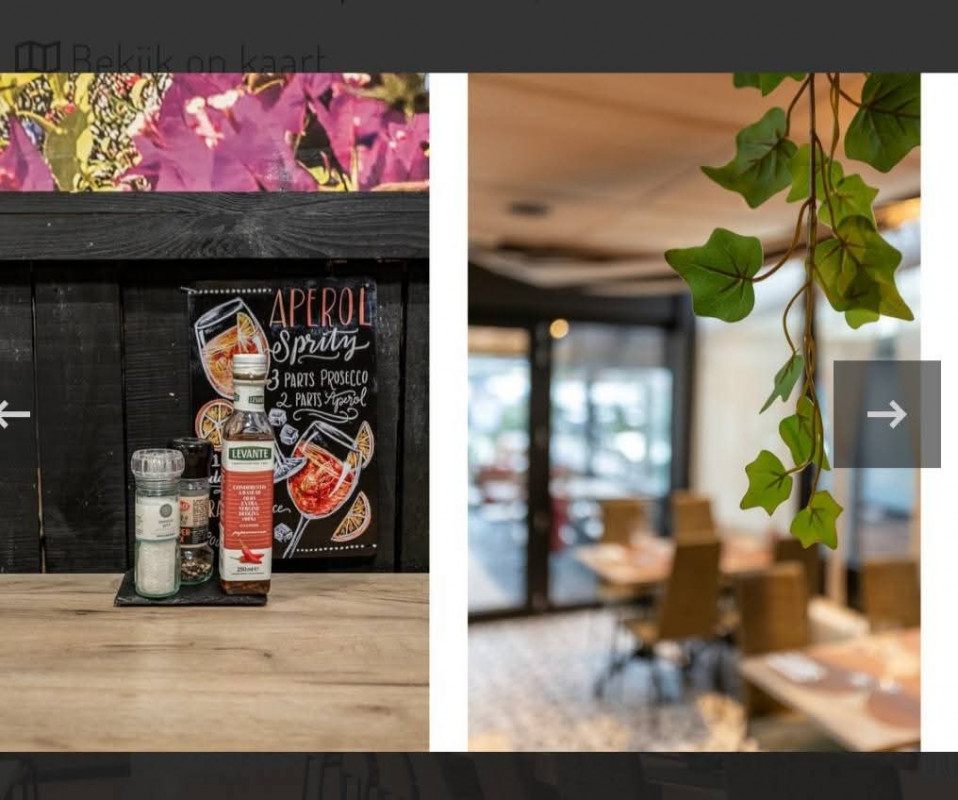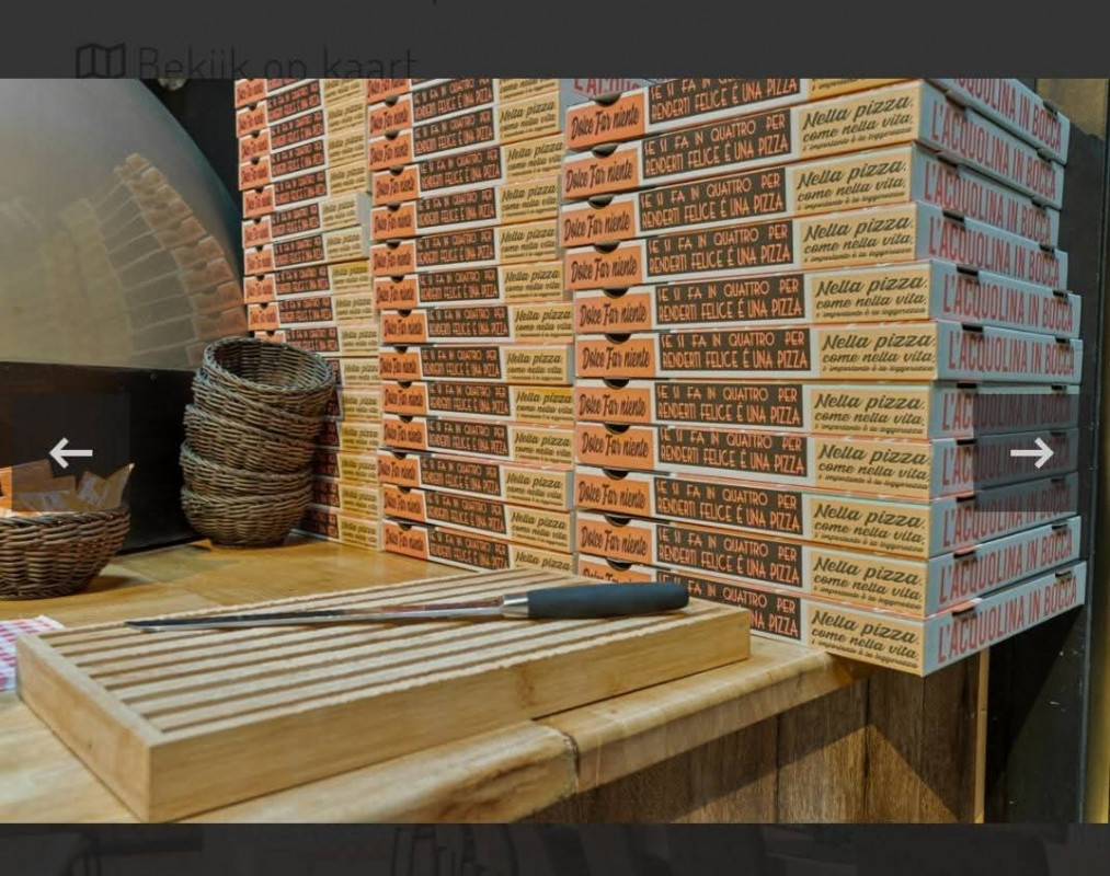 Binnen is er plaats voor 54 couverts. Het binnenterras is verwarmd en biedt 16 zitplaatsen, terwijl het buitenterras momenteel 44 zitplaatsen heeft, die eventueel uitgebreid kunnen worden. Achterin het gezellige zitgedeelte kunt u het proces van pizza bakken volgen in de prachtige oven, met een aparte pizzeria/keukenhoek.