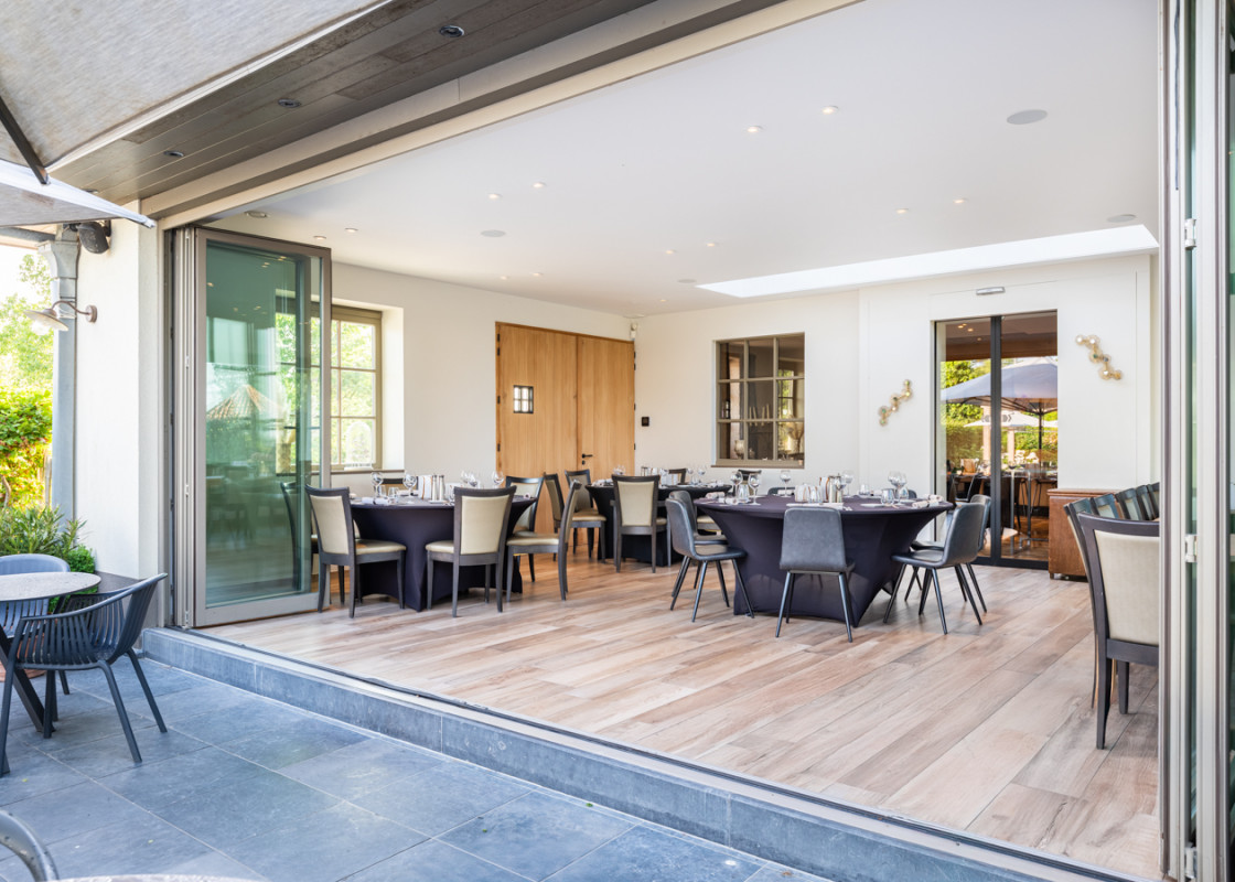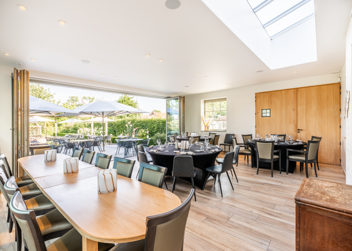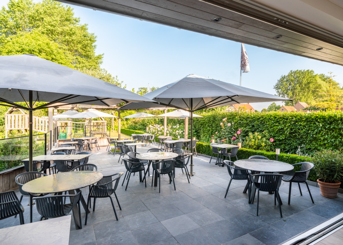 Inclusief gezellige eetzaal, buitenterras en infrastructuur voor à la carte en eventcatering.